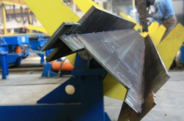 Двутавры выпускаются на конвейере, где автоматически режутся, собираются и свариваются под флюсом. Производственный процесс обеспечивает балкам полный провар, точные геометрические параметры и превосходный вид. Сварочный шов деталей контролируется ультразвуком.